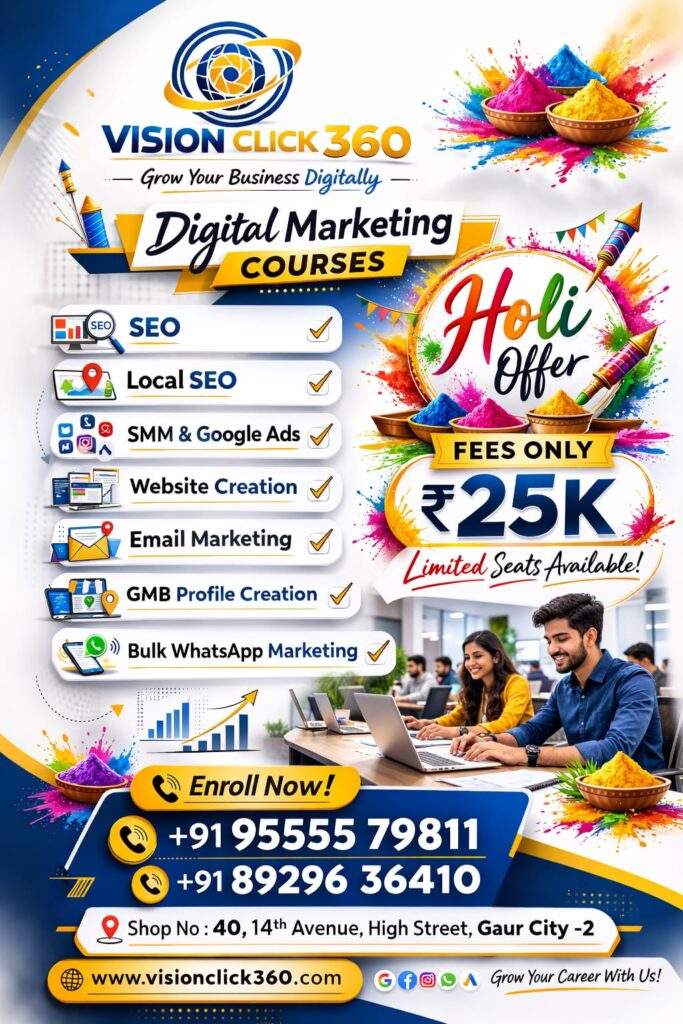 Local success stories prove this. For example, a marketing executive from Gaur City-2 doubled her client leads within 2 months after completing a professional course with VisionClick 360 Digital Marketing Training Institute.